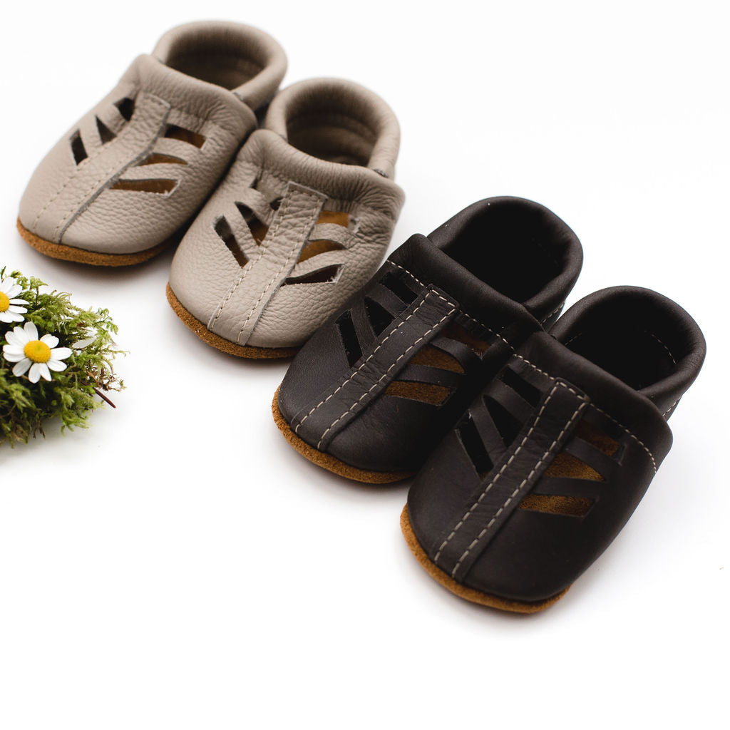 Starry Knight Design shoes are handmade in Montana USA by a team of local women with high-quality 100% leather and suede. Since 2008, We have been designing and making soft soled leather shoes for your tiny babies up to kids.  Our Shoes are great for ages newborn to 4years:
