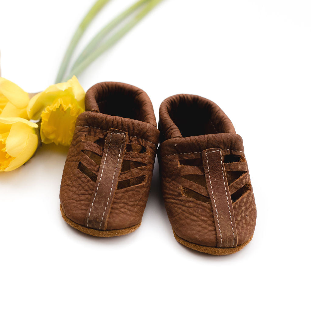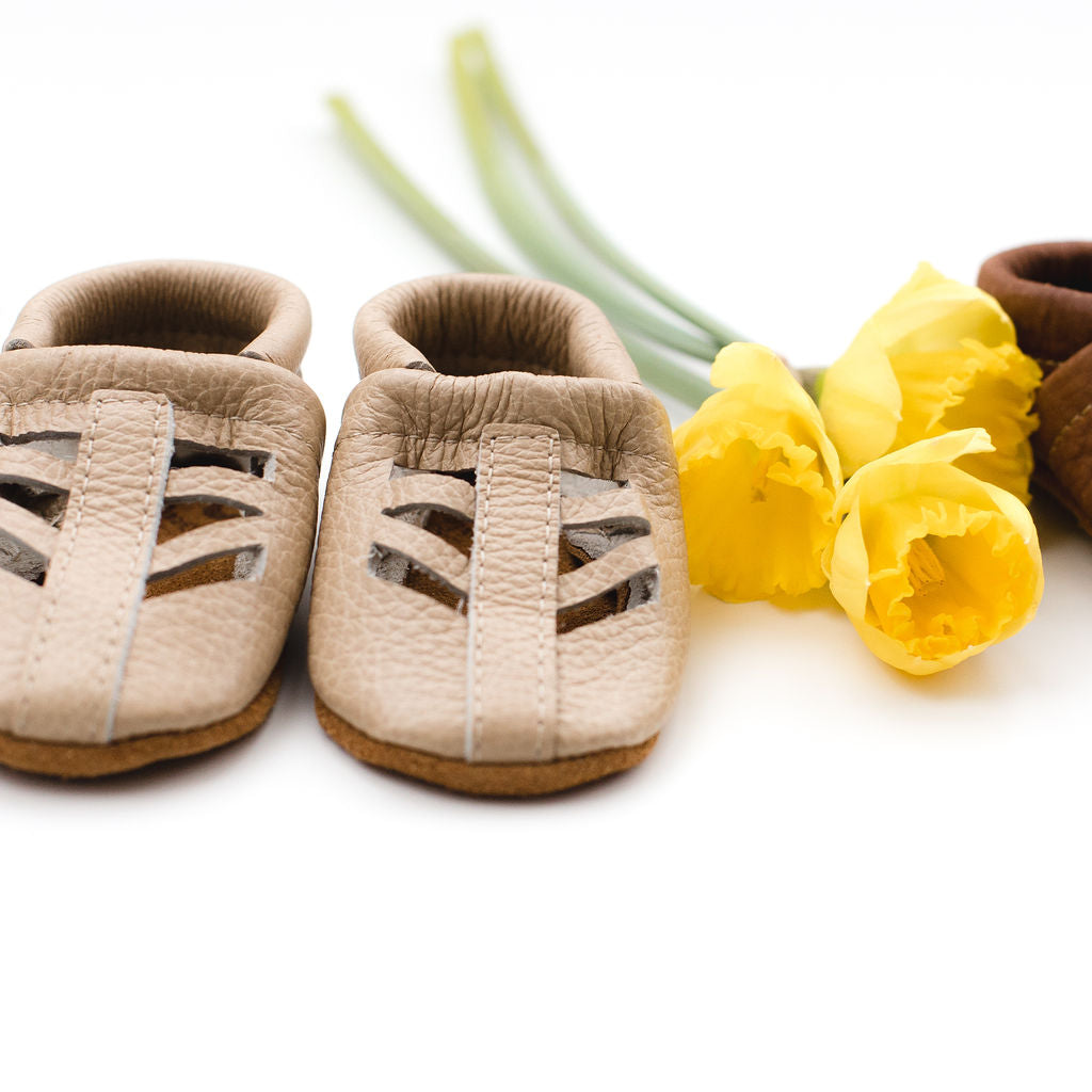 Starry Knight Design shoes are handmade in Montana USA by a team of local women with high-quality 100% leather and suede. Since 2008, We have been designing and making soft soled leather shoes for your tiny babies up to kids.  Our Shoes are great for ages newborn to 4years: